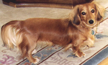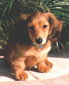 Brandy is our first and much loved miniature longhaired dachshund. She was born in November 1996 and arrived in our household in February 1997. Brandy's canine companions are Rémy and Ouzo, male miniature longhaired dachshunds.