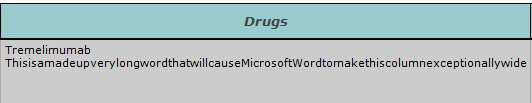 This will allow Word to break the long word as needed to preserve the column width, as shown below.